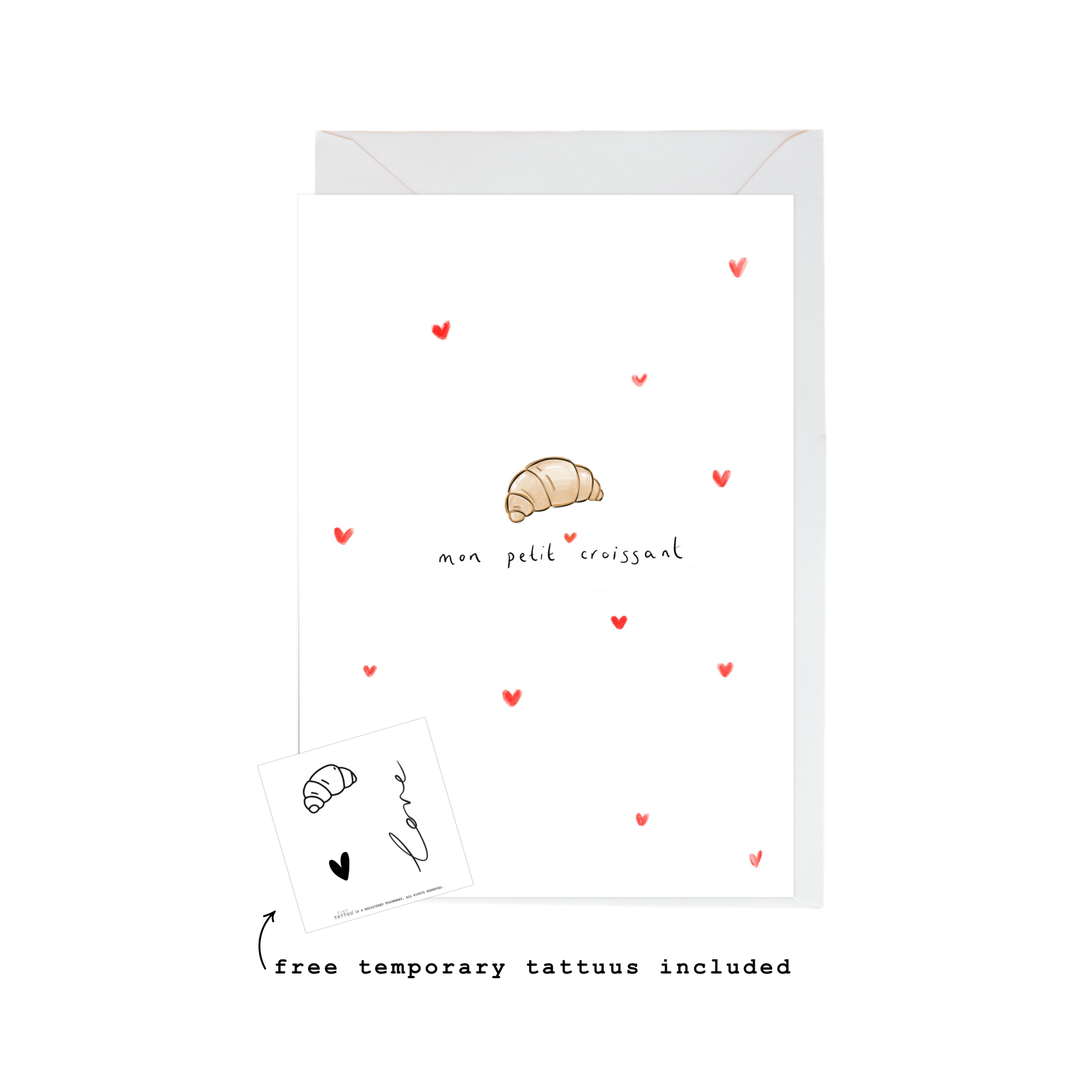 . Free croissant temporary tattoo included inside.